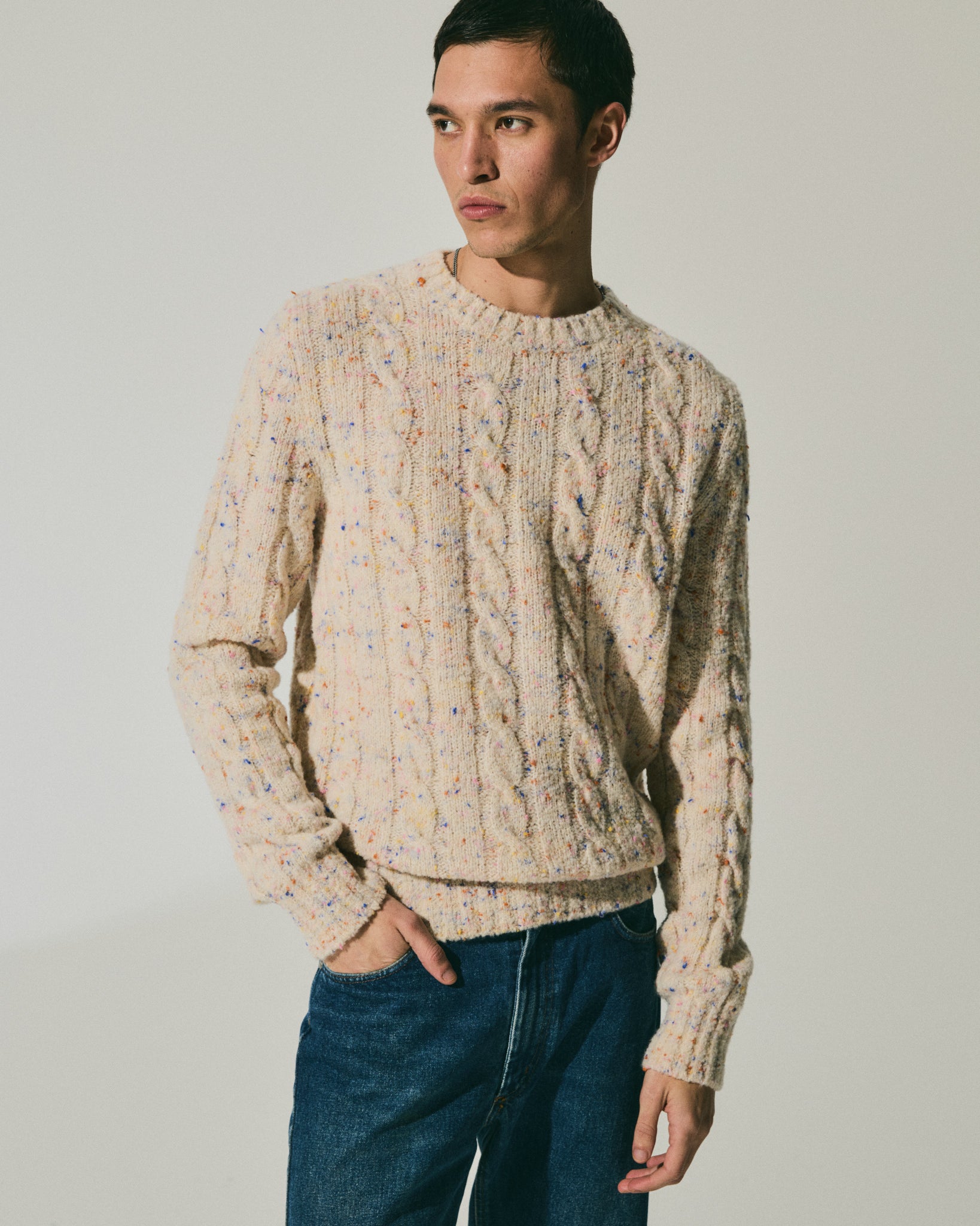 SPONGY CABLES ROUNDNECK MILK