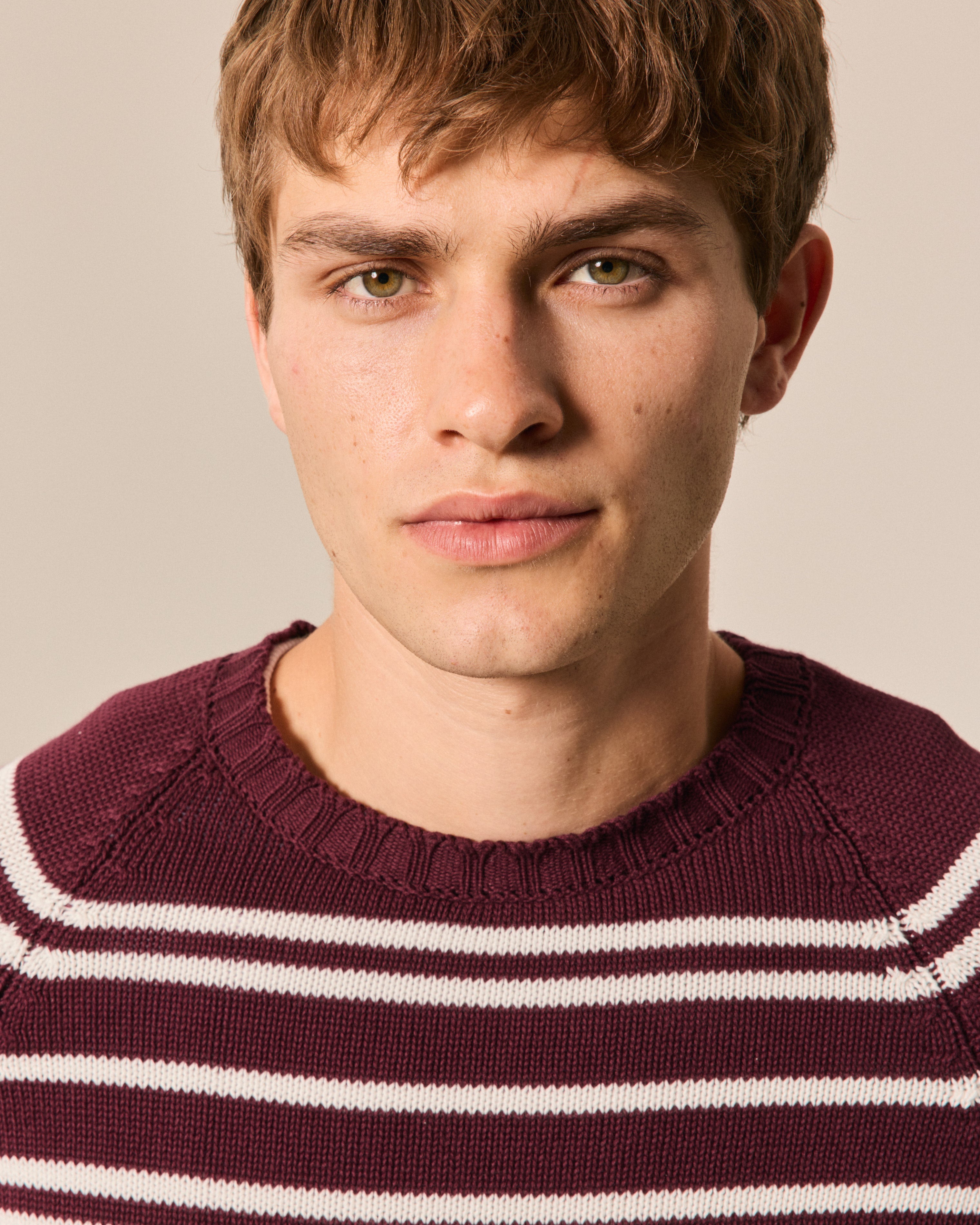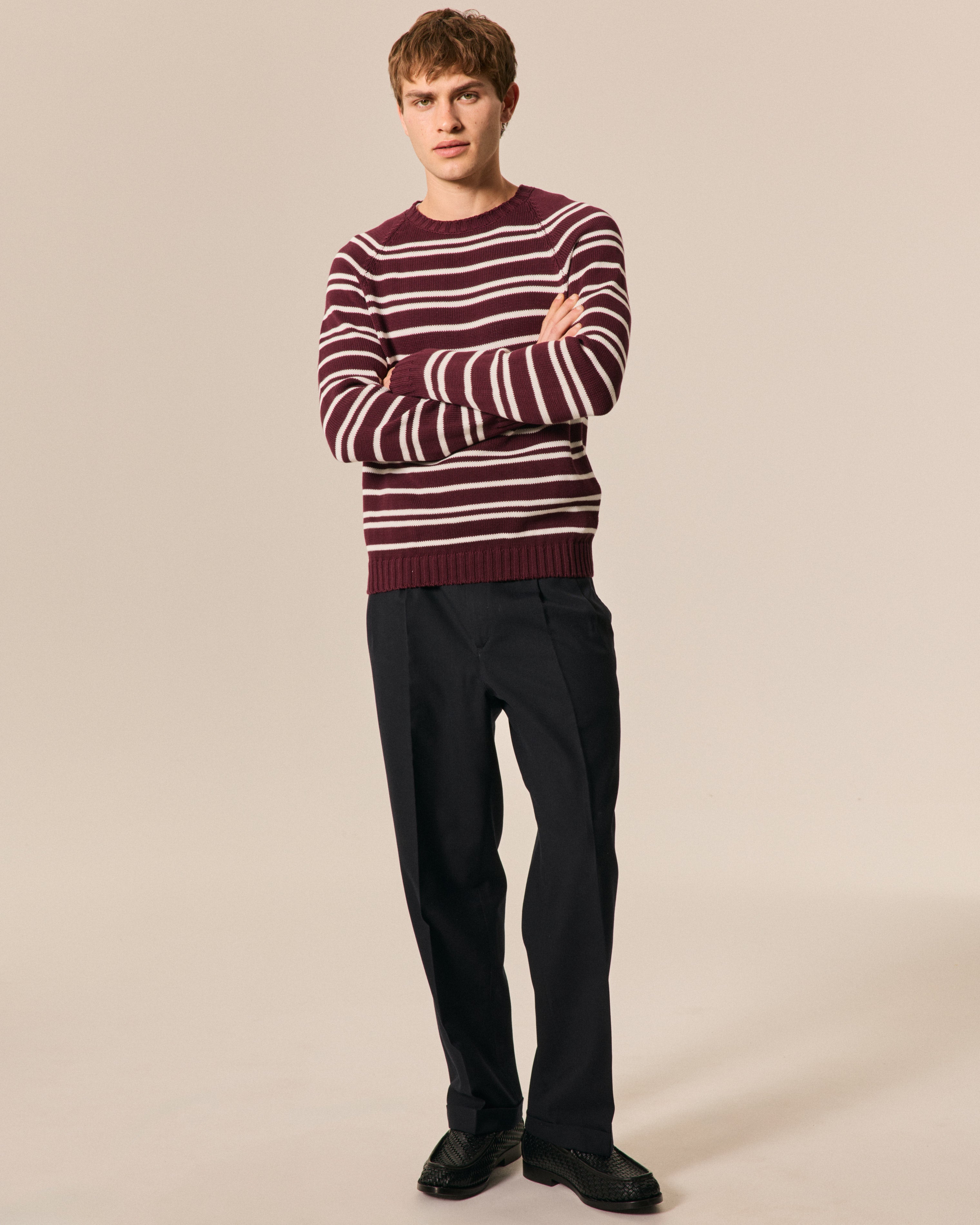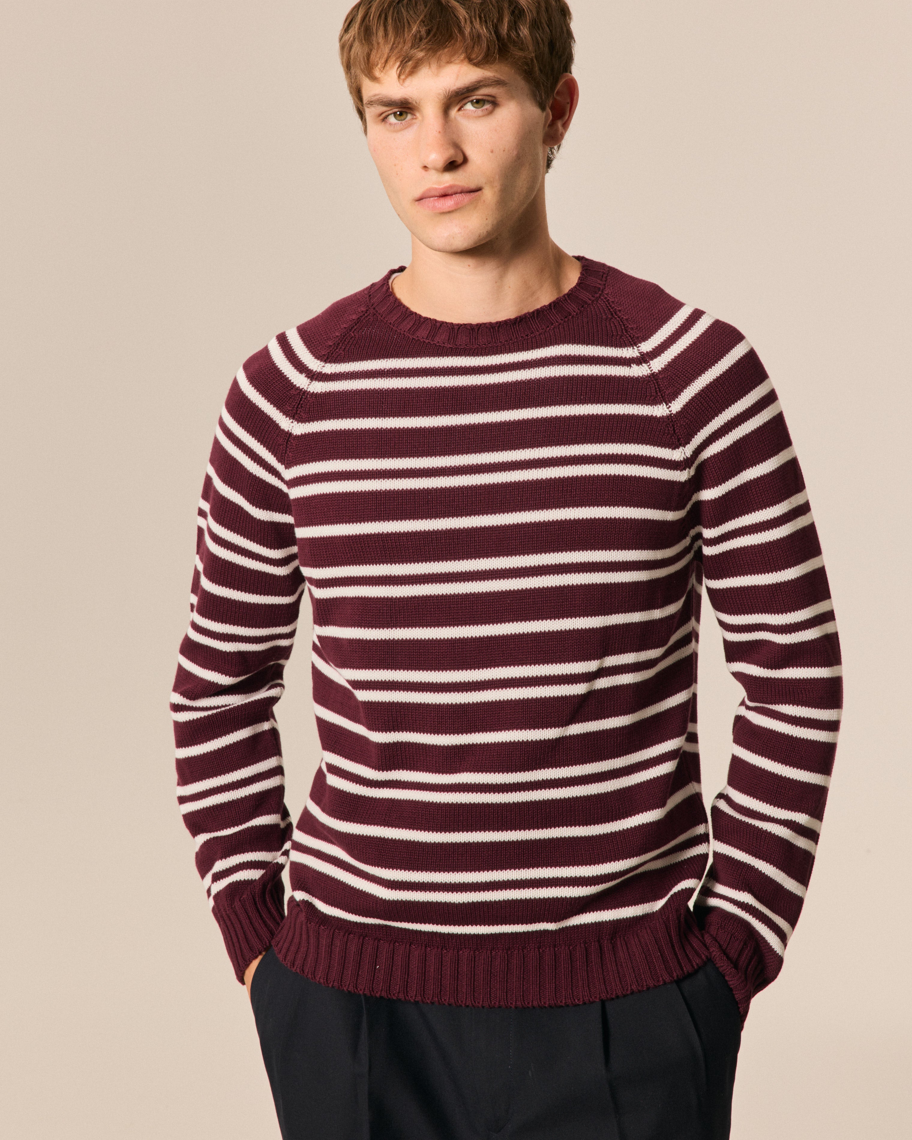ROUND NECK RAGLAN STRIPED COTTON BORDEAUX+MILK