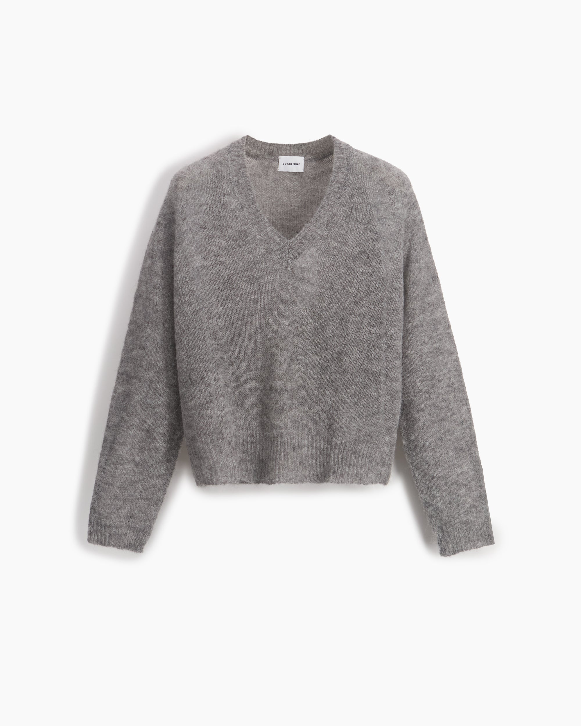 V NECK BOXY ALPACA GREY
