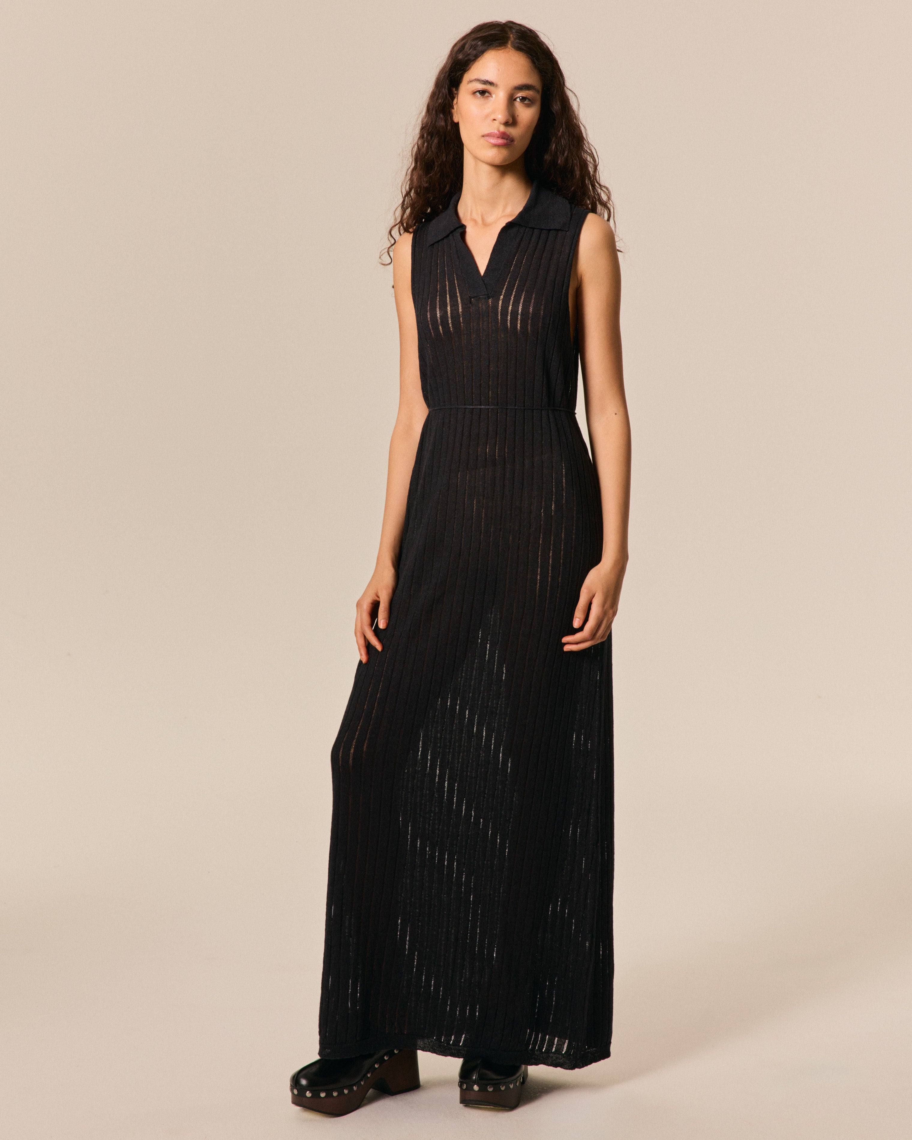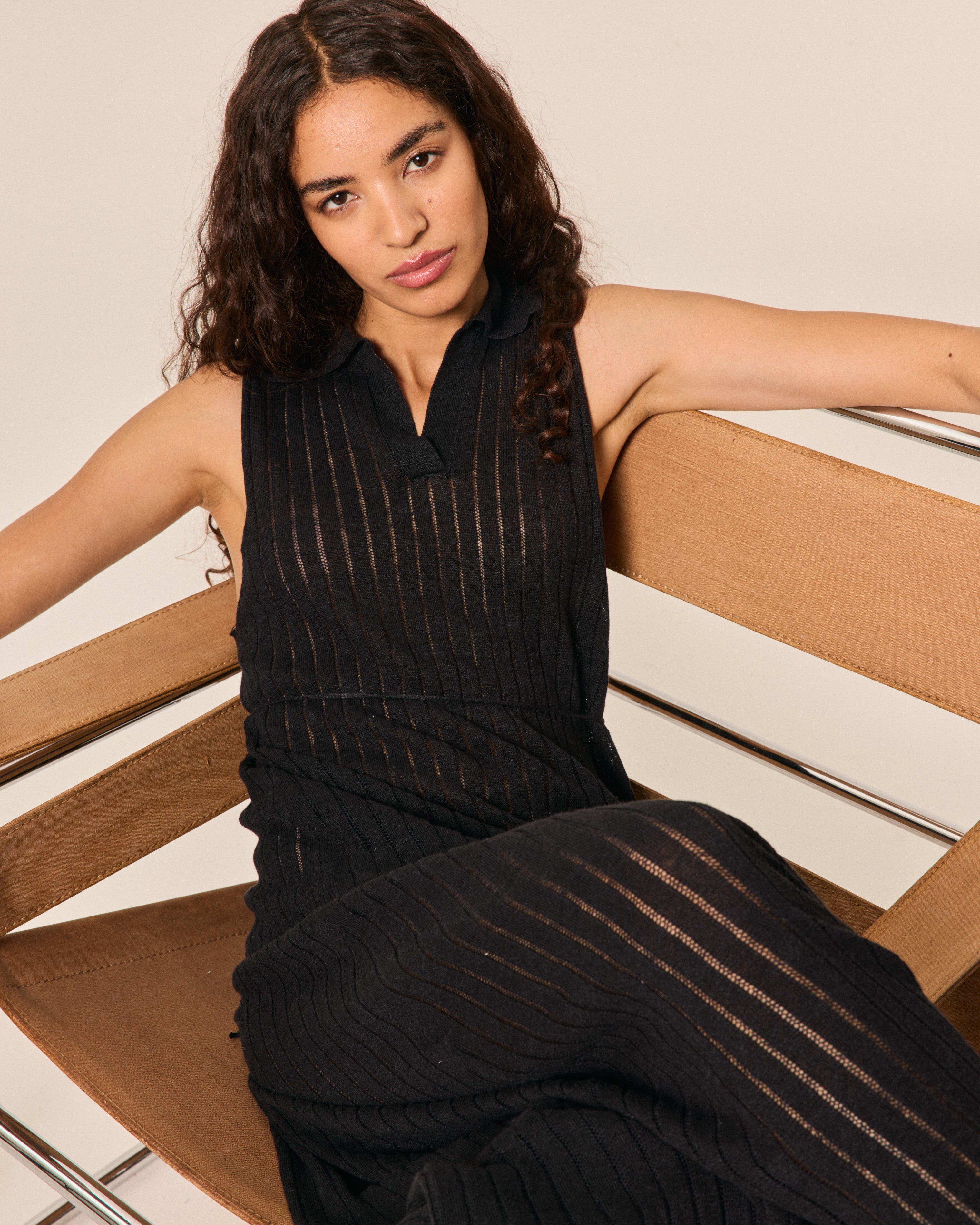 POLO DRESS LINEN LACE BLACK
