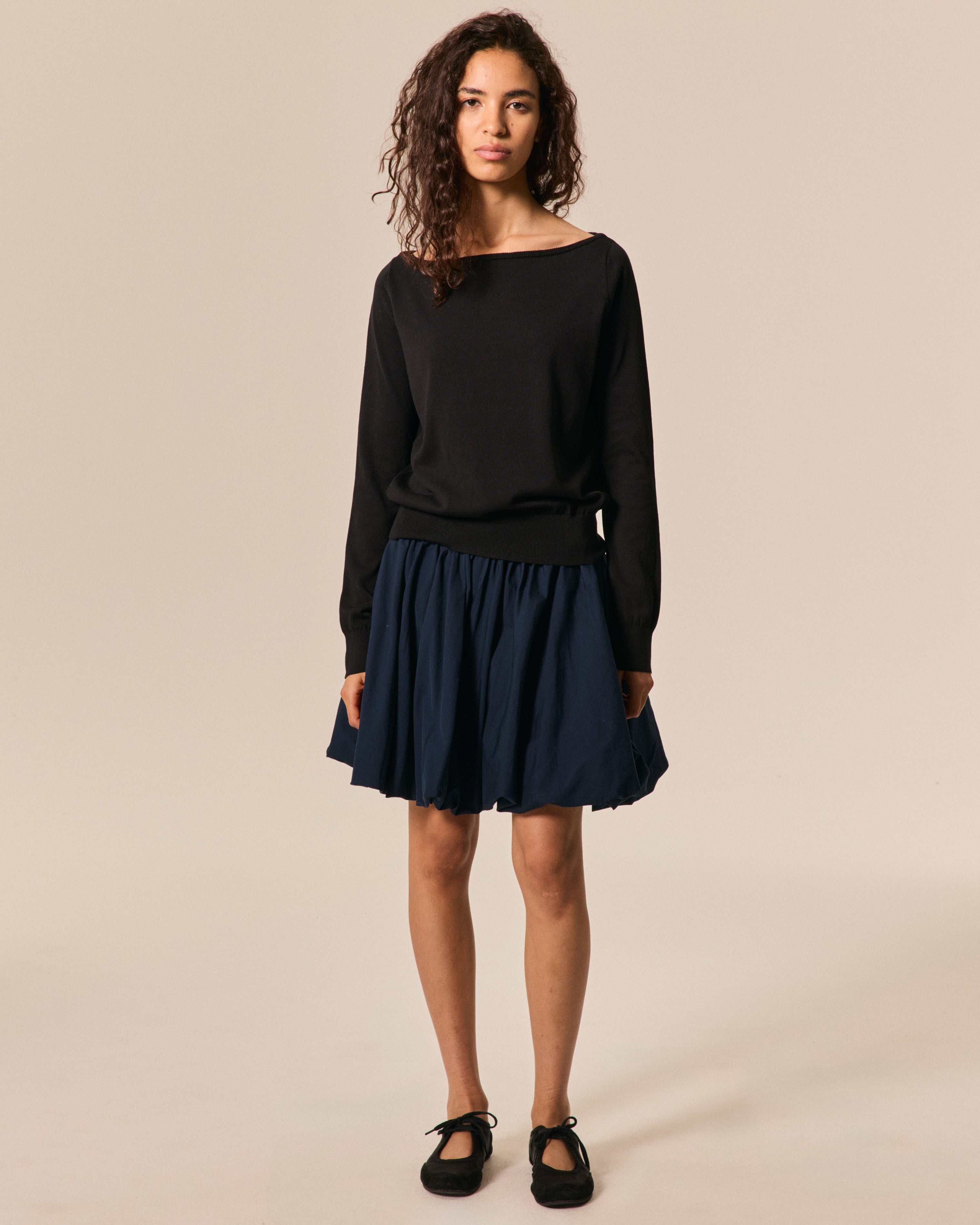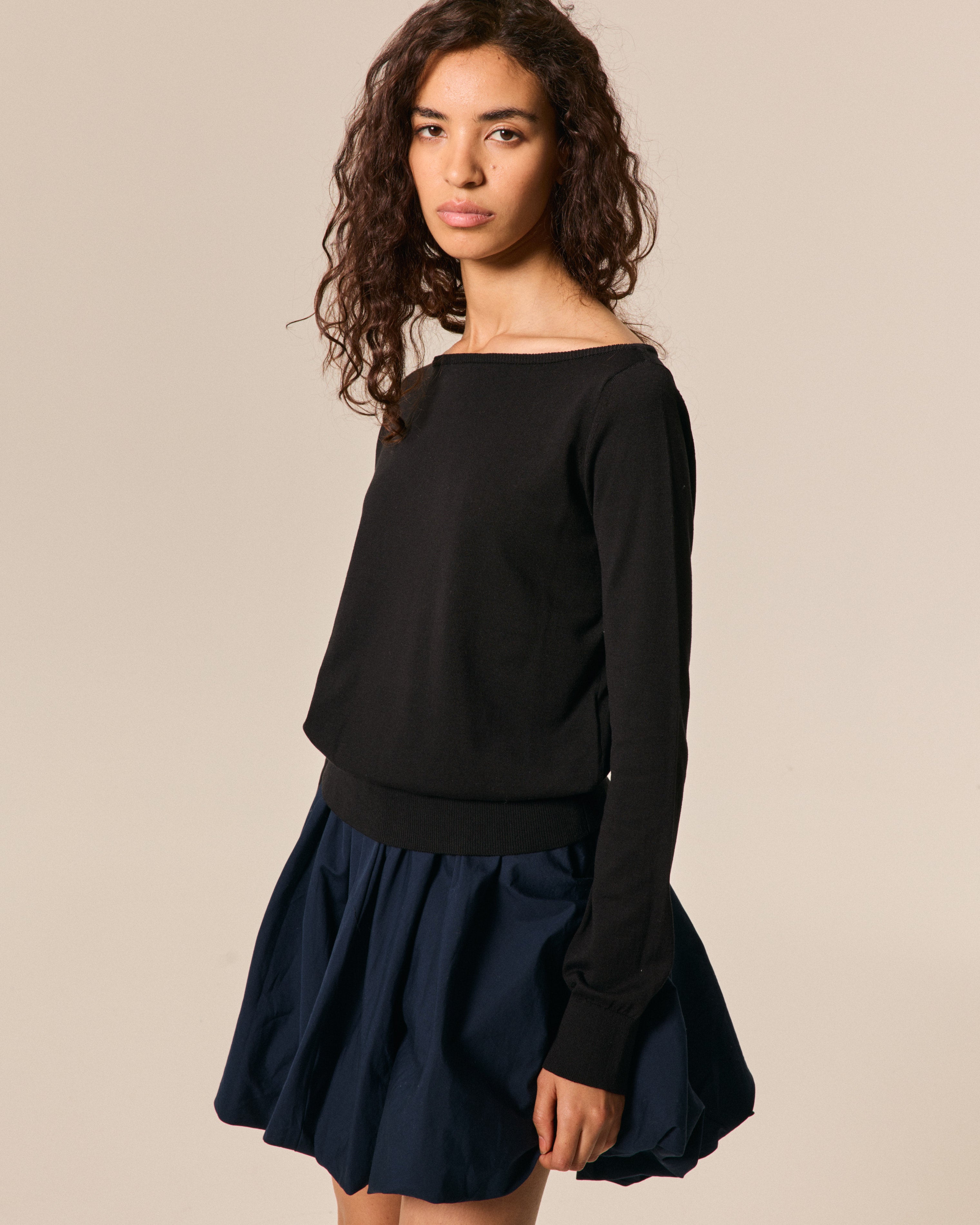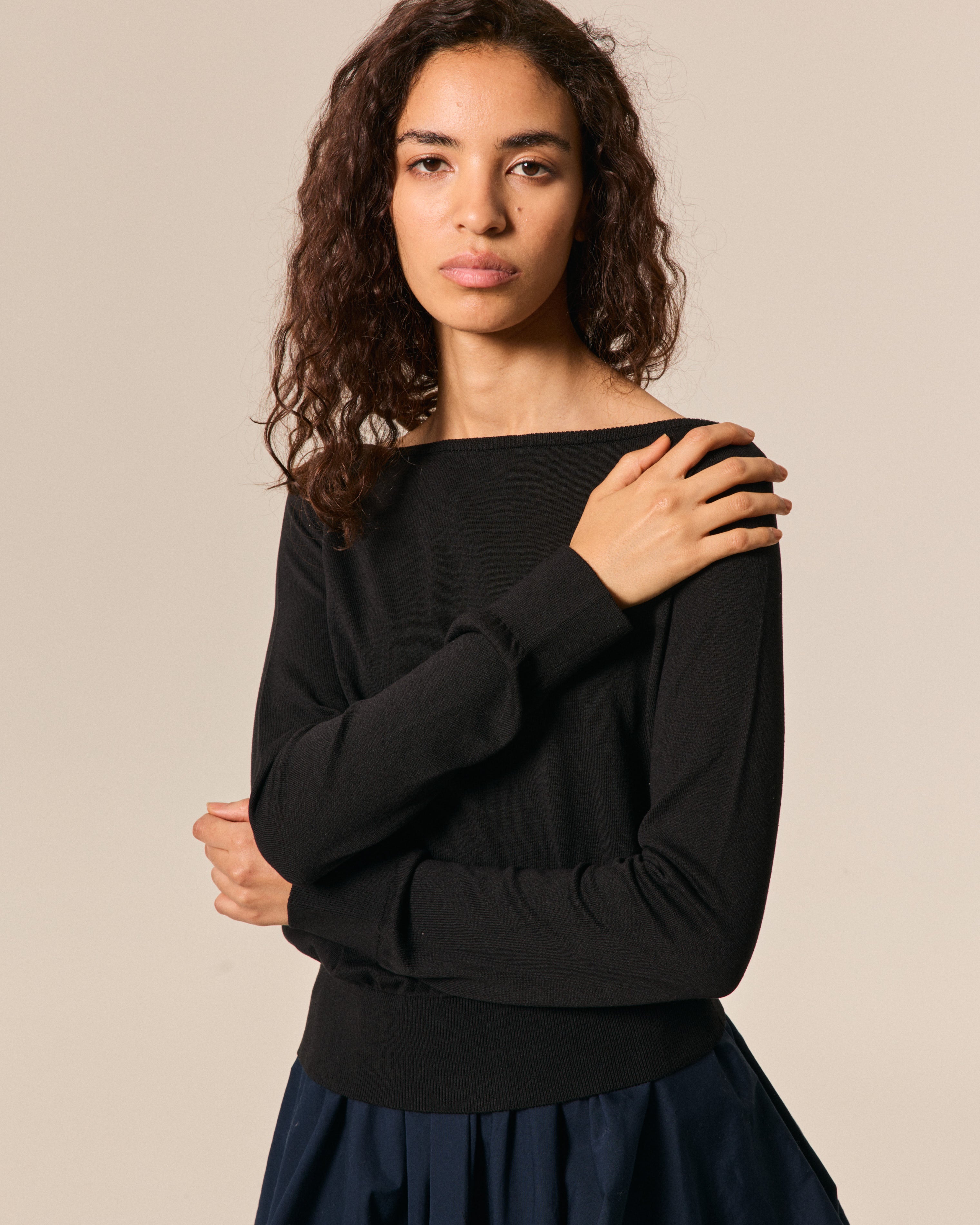 BOAT NECK COT-SILK SOIREE' BLACK