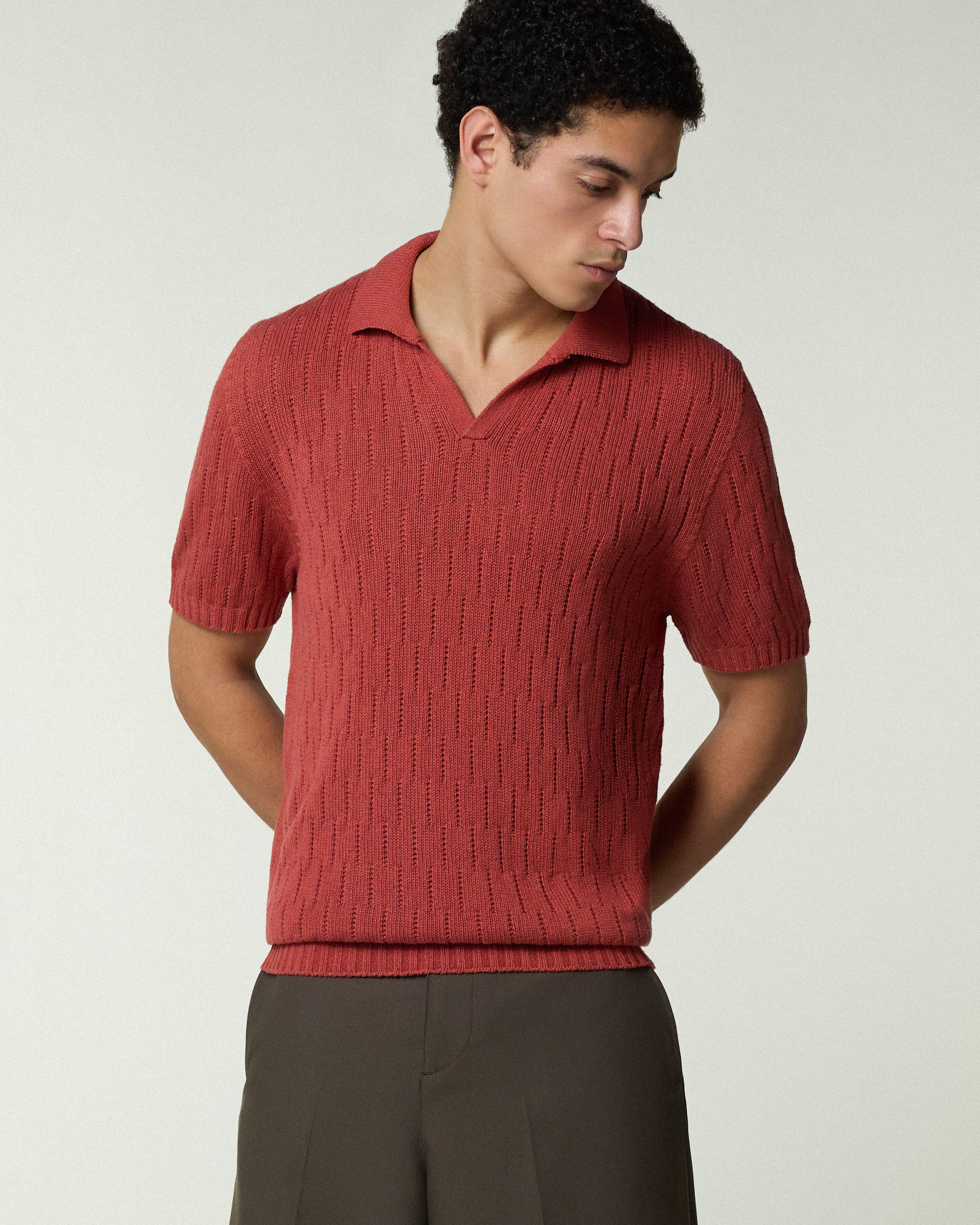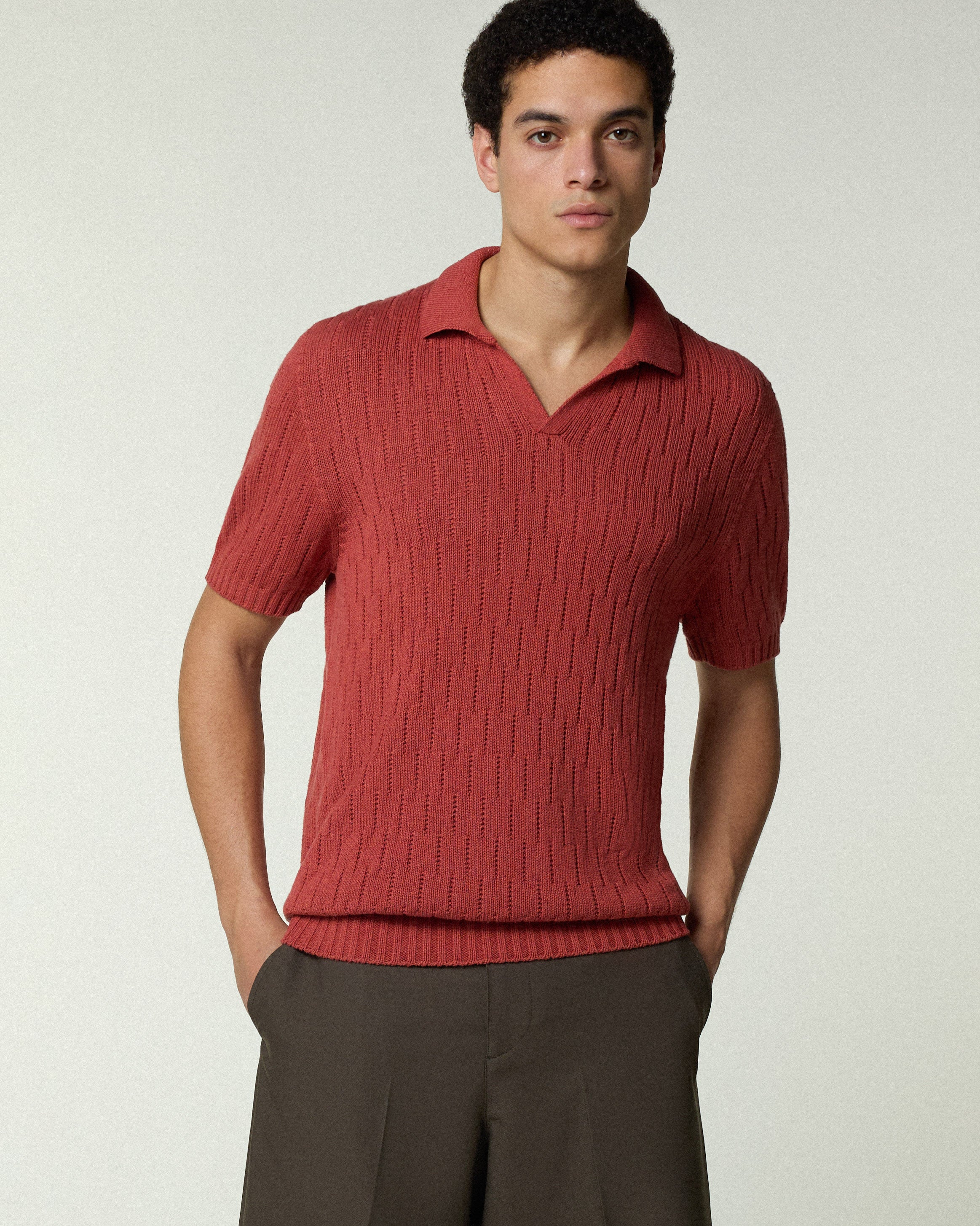 OPEN POLO TRICOT BOURETTE BRICK