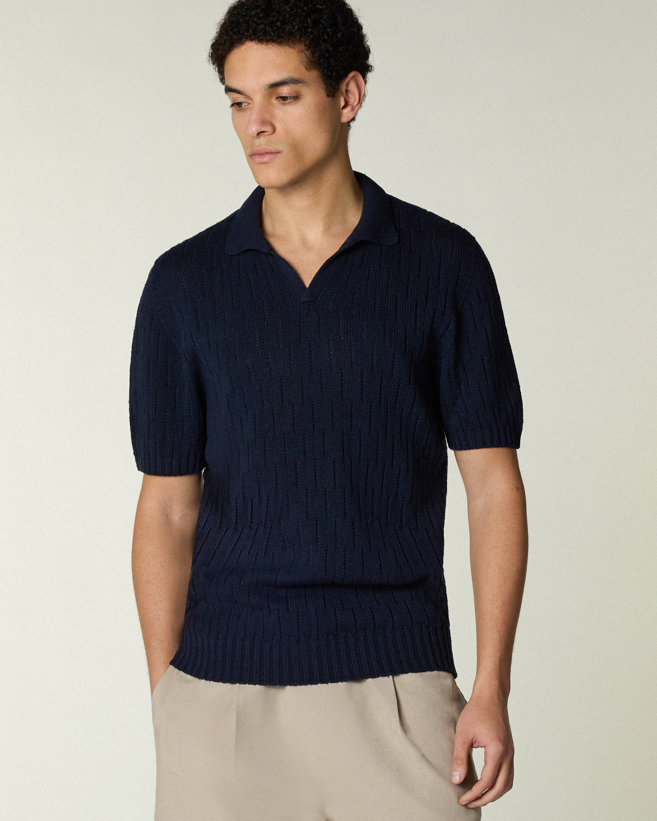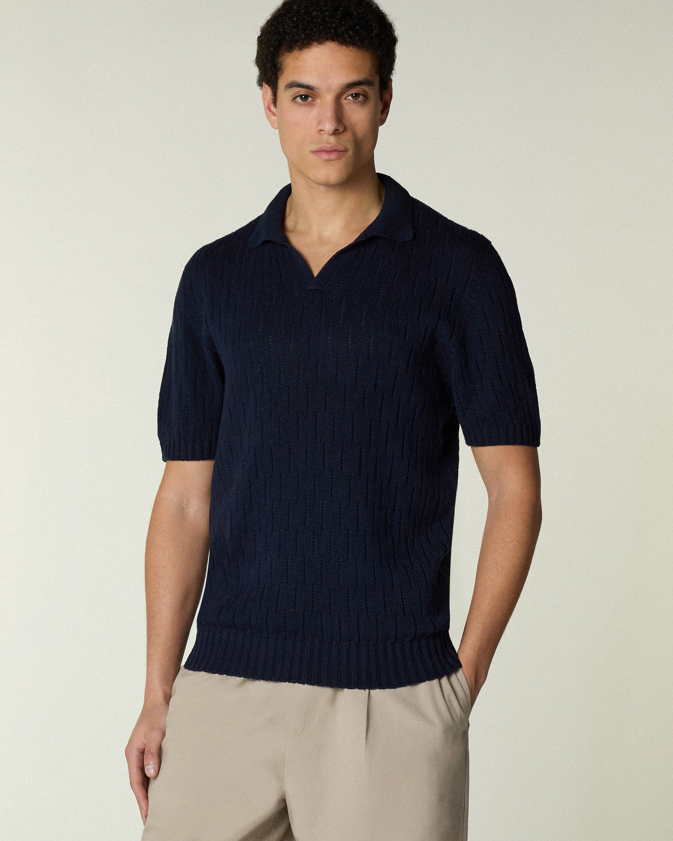 OPEN POLO TRICOT BOURETTE NAVY